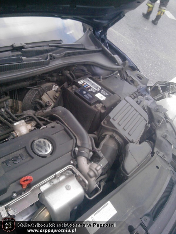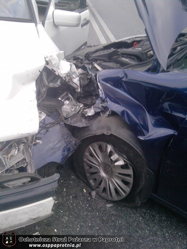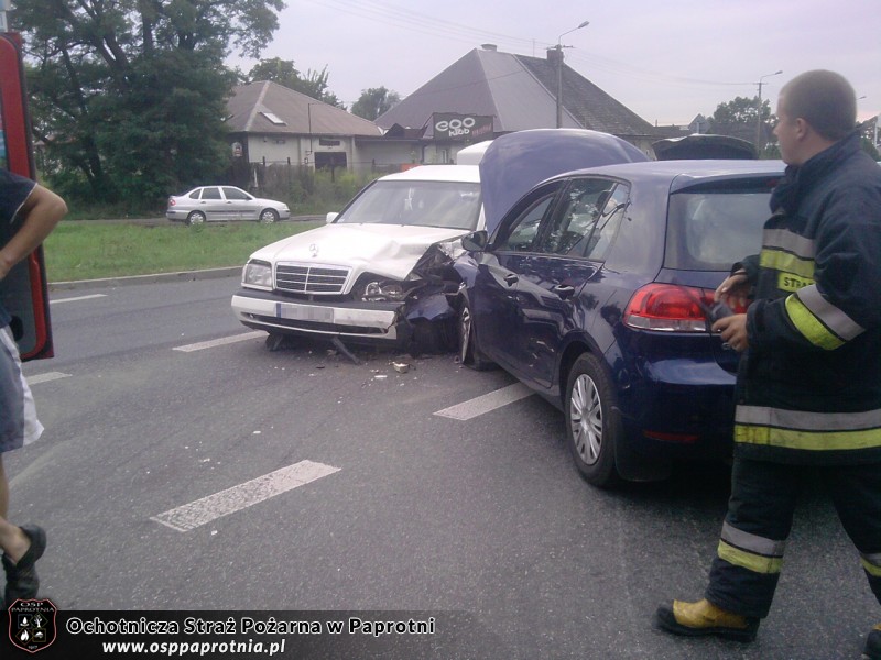 Dnia 31 lipca o godz 18.25 otrzymaliśmy zgłoszenie od PSK Sochaczew, które dotyczyło wypadku drogowego na krajowej dwójce w miejscowości Paprotnia. Wyjechaliśmy samochodem ratownictwa drogowego SLrt Volkswagen LT40 oraz średnim samochodem gaśniczym Iveco. Zderzeniu uległy 3 samochody osobowe marki Mercedes, Volkswagen i Renault. Obecna była już karetka stacjonująca w straży w Paprotni. Nasze działania polegały na zabezpieczeniu miejsca zdarzenia, kierowaniu ruchem drogowym oraz odłączeniu akumulatorów z rozbitych pojazdów, a także neutralizacji wycieków z samochodów osobowych. W czasie prowadzenia naszych działań dojechała policja oraz karetka z lekarzem z Sochaczewa. Osobami rannymi w wypadku była dwójka dzieci. W akcji brało udział 8 strażaków z Paprotni. Akcja trwała ponad godzinę.