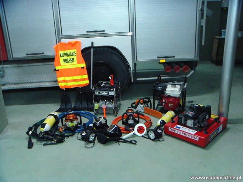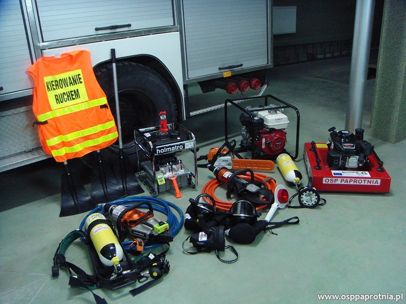1. Sprzęt do ratownictwa drogowego HOLMATRO (pompa, nożyce, rozpierak, wybijak do szyb, nóż do cięcia pasów)2. 2x aparaty do ochrony dróg oddechowych Fenzy 300 bar