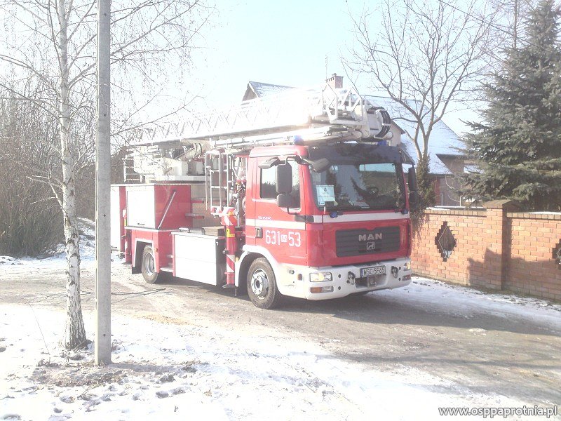 W niedzielę 12 lutego o godz. 9.56 Ochotnicza Straż Pożarna w Paprotni została zadysponowana przez PSK w Sochaczewie do płonącego poddasza w budynku mieszkalnym na ul. Poziomkowej w Paprotni. Na miejsce dojechaliśmy jako pierwsi. Podaliśmy jeden prąd wody z szybkiego natarcia na płonący dach, aby ułatwić dostęp do miejsca pożaru musieliśmy przy pomocy piły rozciąć dach. Dwóch ratowników z OSP oraz dwóch ratowników z PSP prowadziło działania wewnątrz budynku w aparatach oddechowych. PSP Sochaczew podała jeden prąd wody z szybkiego natarcia do środka budynku. Na miejscu były OSP Niepokalanów GBA, OSP Paprotnia GBA oraz PSP Sochaczew GCBA oraz SHD 25 . Obecnych było 10 strażaków z OSP Paprotni. Na szczęście nikt nie został ranny.