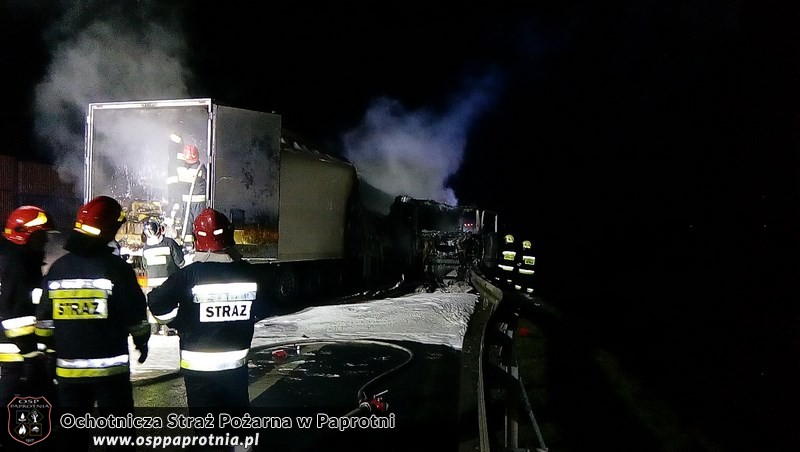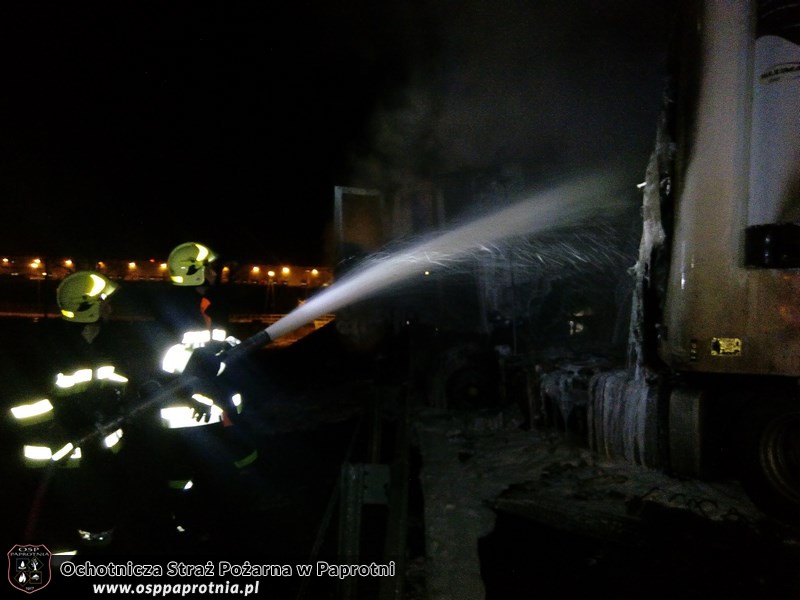 W dniu 24.03.2016 Powiatowe Stanowisko Kierowania w Sochaczewie zadysponowało Osp Paprotnia do płonącego samochodu ciężarowego na obwodnicy Sochaczewa pomiędzy rondem w Wójtówce a rondem Żyrardowskim. Na miejsce udaliśmy się GCBA 5/32. Po dojeździe na miejsce zdarzenia okazało się że spaleniu uległ cały ciągnik siodłowy marki Man. Kierowca przed przybyciem zastępów straży sam opuścił pojazd. Działania strażaków polegały na podaniu dwóch prądów piany gaśniczej. Jeden na palący się ciągnik siodłowy natomiast drugi na paląca się naczepę w której były przewożone środki do płukania jamy ustnej. Przez cały czas trwania akcji trasa była całkowicie zablokowana. Na miejscu działania prowadziły zastępy z Osp Paprotnia 639[M]79, Osp Niepokalanów 639[M]71, JRG Sochaczew 631[M]21, 631[M]25, 631[M]40 oraz Policja. Po 1.5 godzinie powróciliśmy do koszar.Działania ratowniczo-gaśnicze prowadzone były przez 9 strażaków PSP i 12 strażaków OSP.