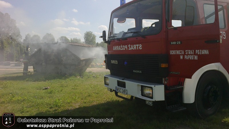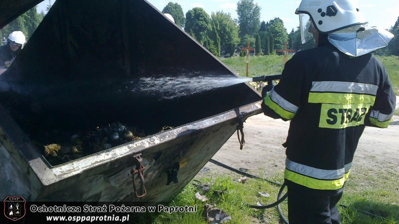 19 maja 2012 roku o 14:57 zostaliśmy zadysponowani do pożaru śmietniska na cmentarzu w Paprotni. Po dojeździe na miejsce zdarzenia szybkim natarciem sprawnie ugasiliśmy pożar. W akcji brało udział 8 strażaków ze Straży w Paprotni.