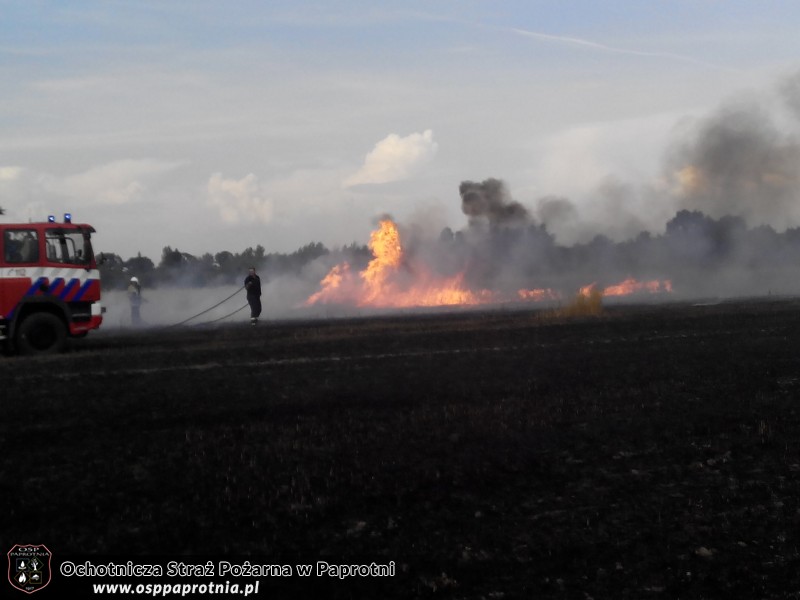 Dnia 04-08-2014 PSK Sochaczew zadysponował Osp Paprotnia do pożaru zboża które miało miejsce w miejscowości Pawłowice gmina Teresin. Na miejsce został zadysponowany GBA 2,5/28 na miejsce pożaru przybyły także jednostki z powiatu warszawa zachód OSP GAWARTOWA WOLA GBA 2,5/16 OSP STARE GNATOWICE GBA 3,5/16 oraz OSP BIENIEWO GCBA 5/32. Działania polegały na użyciu tłumnic i podaniu prądu wody z szybkiego natarcia do ugaszenia palącego się zboża.Za pomocą ciągnika z broną talerzową udało się odciąć przedostawanie się ognia dalej. spaleniu uległo około 3 hektarów W działaniach brało udział 6 strażaków z osp Paprotnia